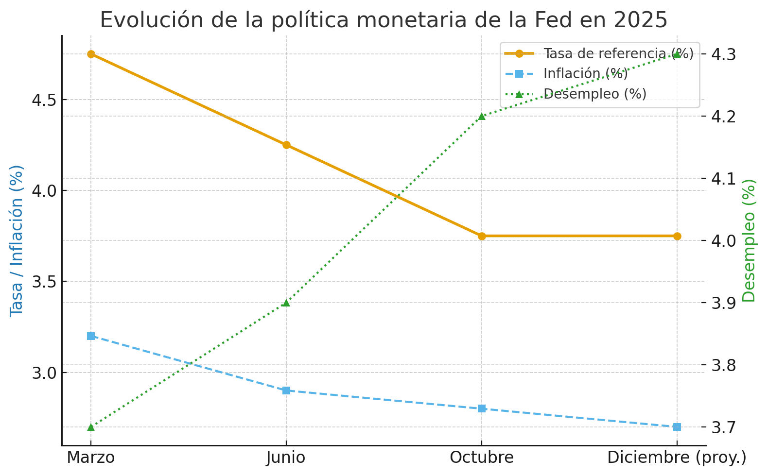 El motivo principal: aunque la actividad económica muestra cierto dinamismo, el mercado laboral ha empezado a perder impulso, y la inflación sigue por encima de la meta del 2 %. (www.federalreserve.gov)