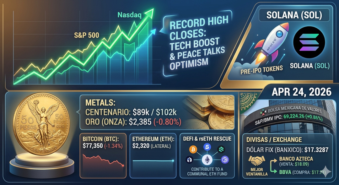 En México, el IPC logró una recuperación importante, mientras que el ecosistema cripto local se mantiene atento al nuevo mercado de tokens pre-IPO que dinamiza la red de Solana.